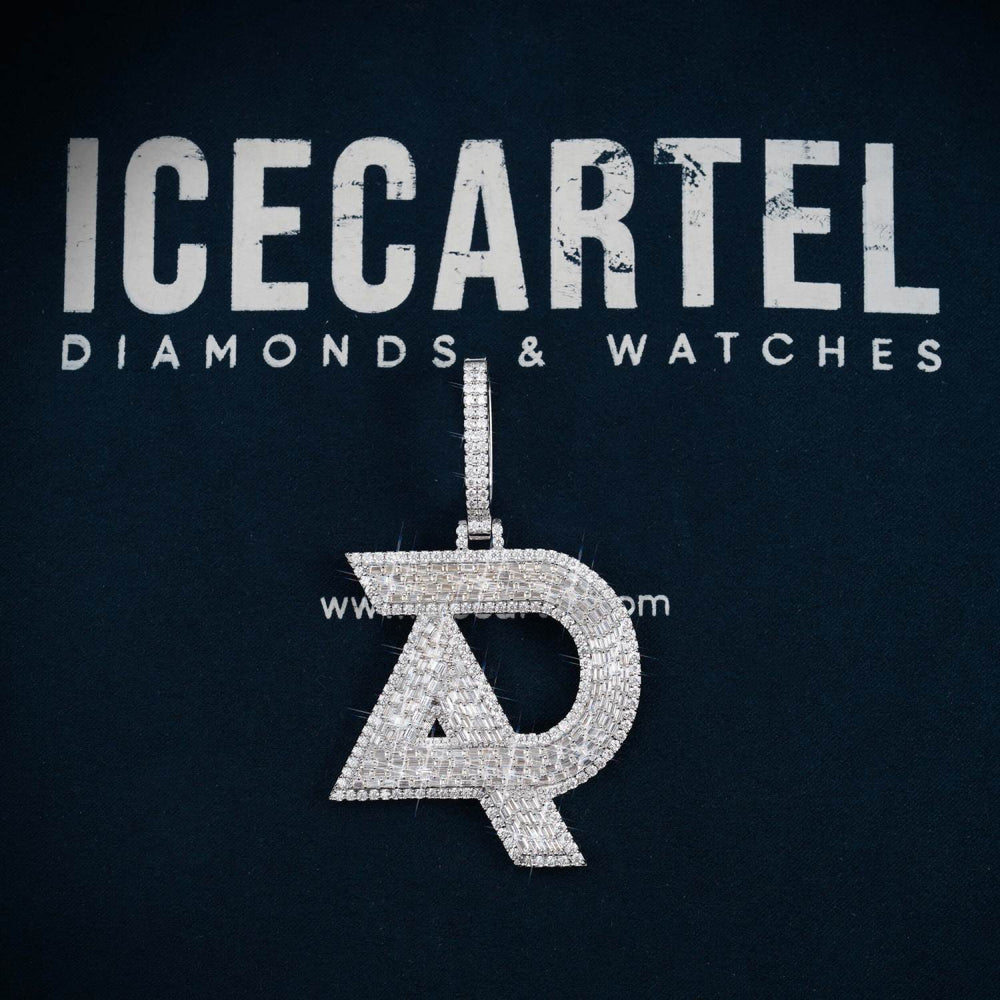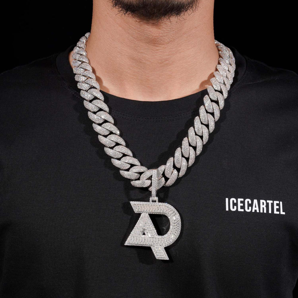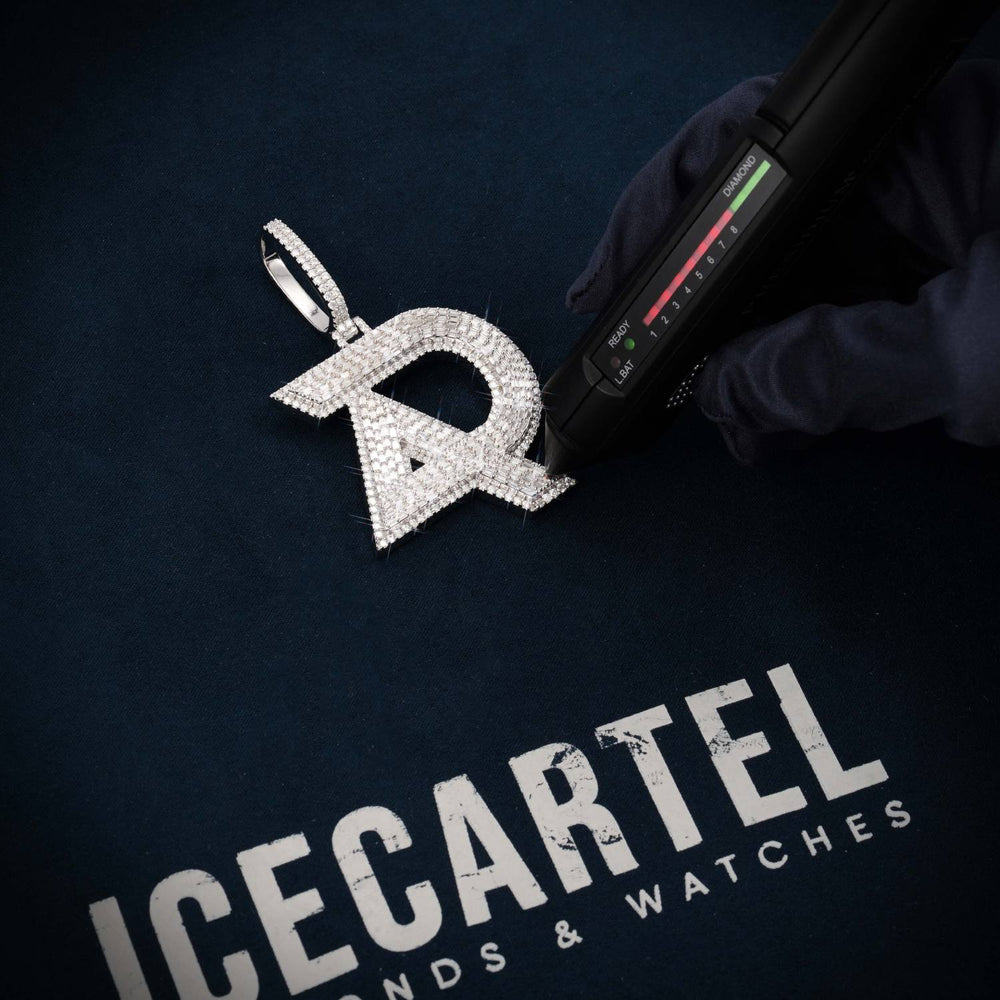 ICECARTEL exclusive "AD" Custom Moissanite Pendant 14K Gold is now available, made with a base of 925 sterling silver and PVD plated with a thick layer of 14K Gold.