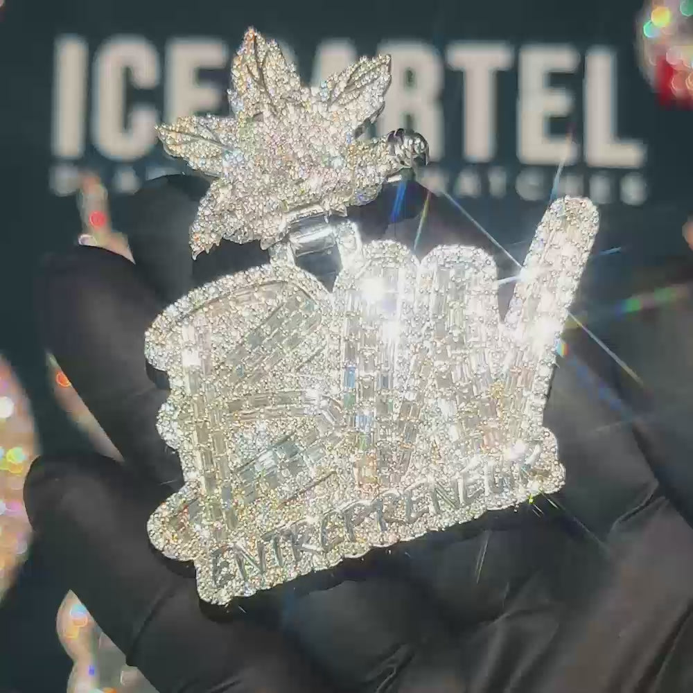 ICECARTEL exclusive "BW" Custom Moissanite Pendant is now available, made with a base of 925 sterling silver and PVD plated with a thick layer of 14K White Gold .