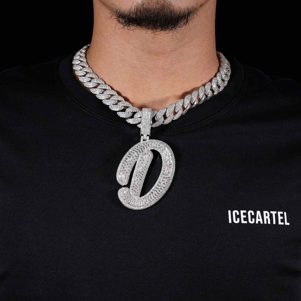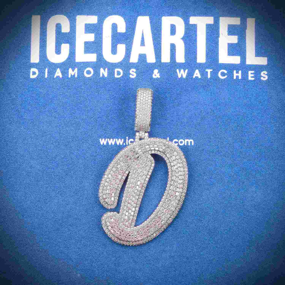 ICECARTEL exclusive "D" Custom Moissanite Pendant 14K Gold is now available, made with a base of 925 sterling silver and PVD plated with a thick layer of 14K Gold.