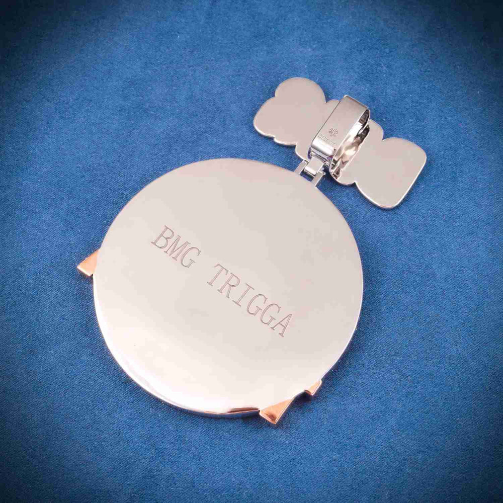 ICECARTEL exclusive "DMG" Custom Moissanite Pendant 14K Goldย Goldย is now available, made of 925 sterling silver and PVD plated with a thick layer of 14K Gold.