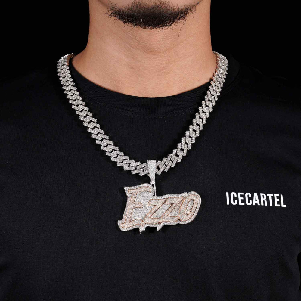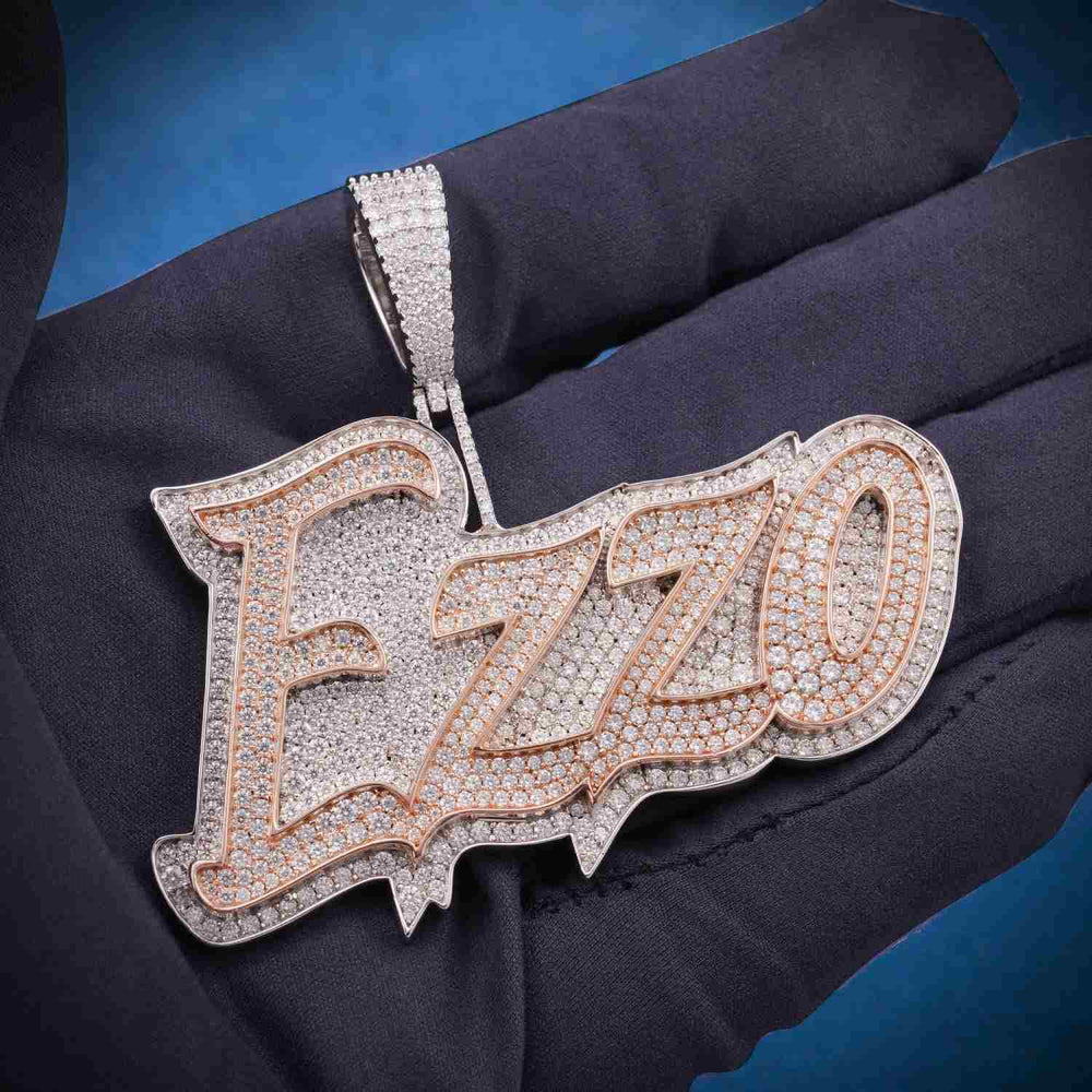 ICECARTEL exclusive "EZZO" Custom Name Moissanite Pendant 14k Gold is now available, made with a base of 925 sterling silver and PVD plated with a thick layer of 14K Gold.