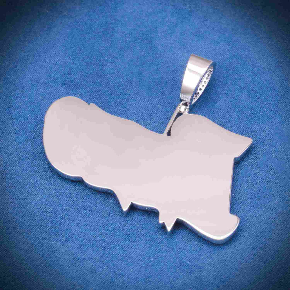 This custom pendant is iced out withย VVS moissanite flawless diamonds. All of the diamonds on this custom pendant passes the diamond tester.