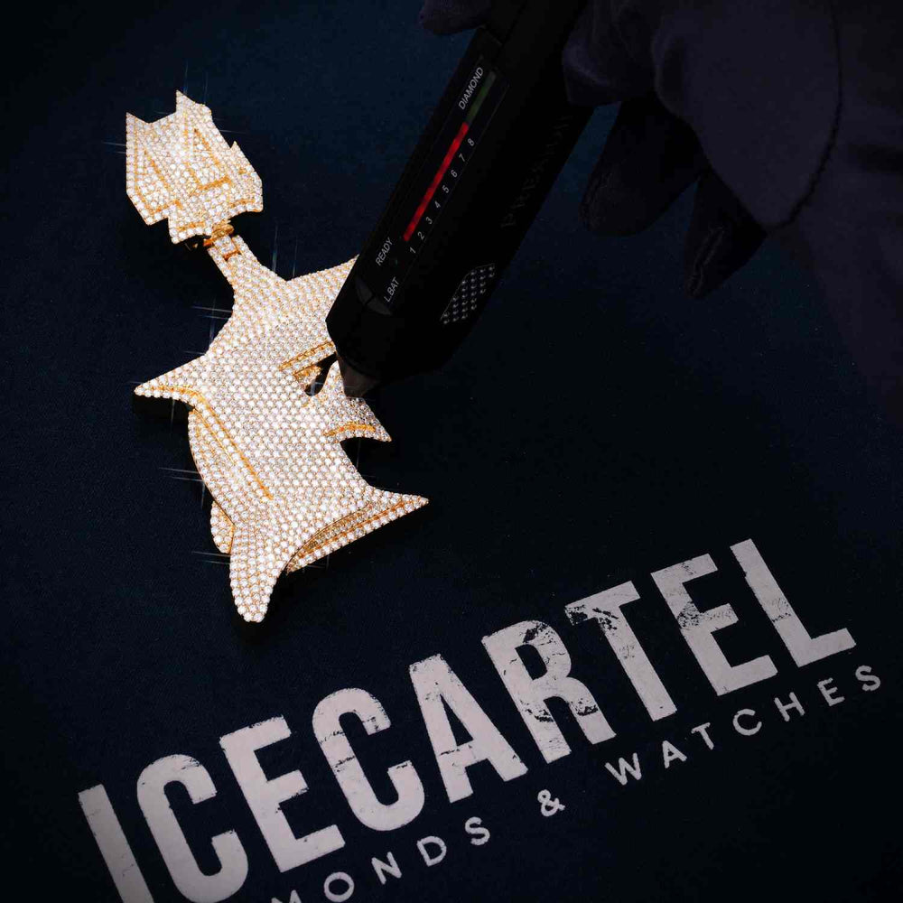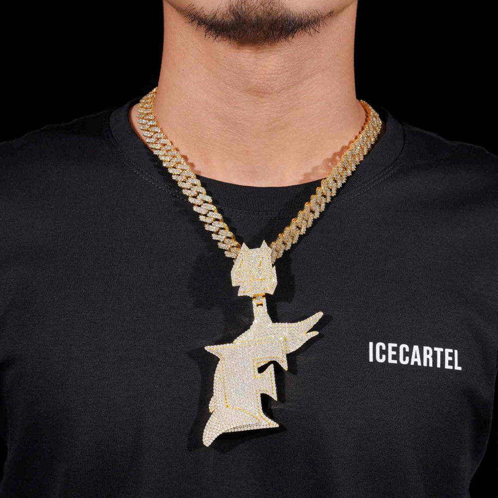 ICECARTEL exclusive "F" Custom Moissanite Pendant 14K Gold is now available, made of 925 sterling silver and PVD plated with a thick layer of 14K Gold.