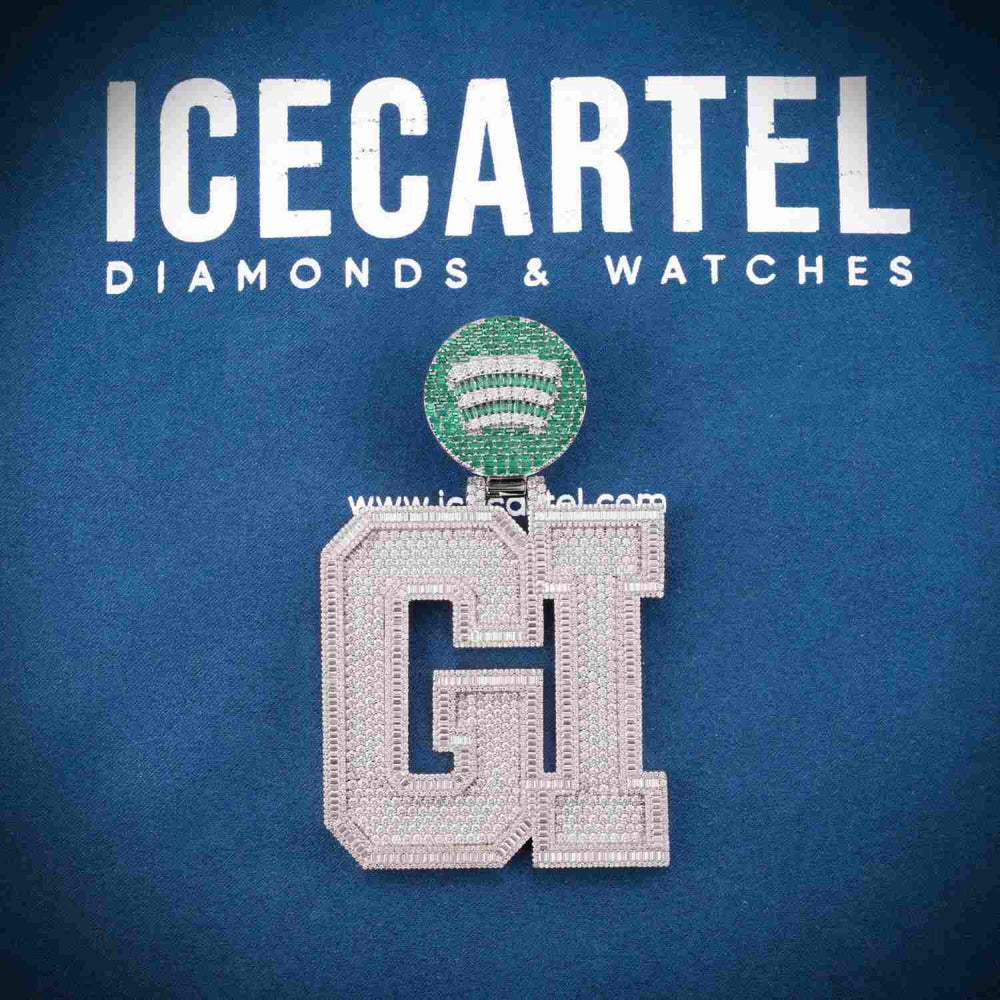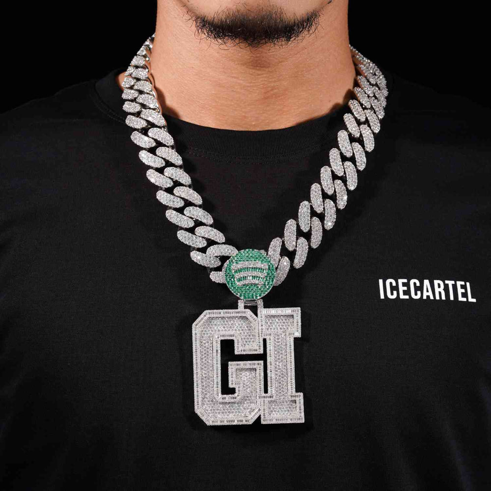 ICECARTEL exclusive "GI" Custom Moissanite Pendant 14k Goldย is now available, made of 925 sterling silver and PVD plated with a thick layer of 14K Gold.