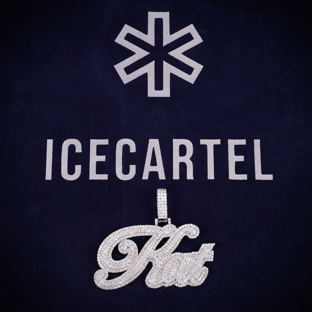 ICECARTEL exclusive "KAT" Custom Moissanite Name Pendant 14K Goldย is now available, made of 925 sterling silver and PVD plated with a thick layer of 14K Gold.