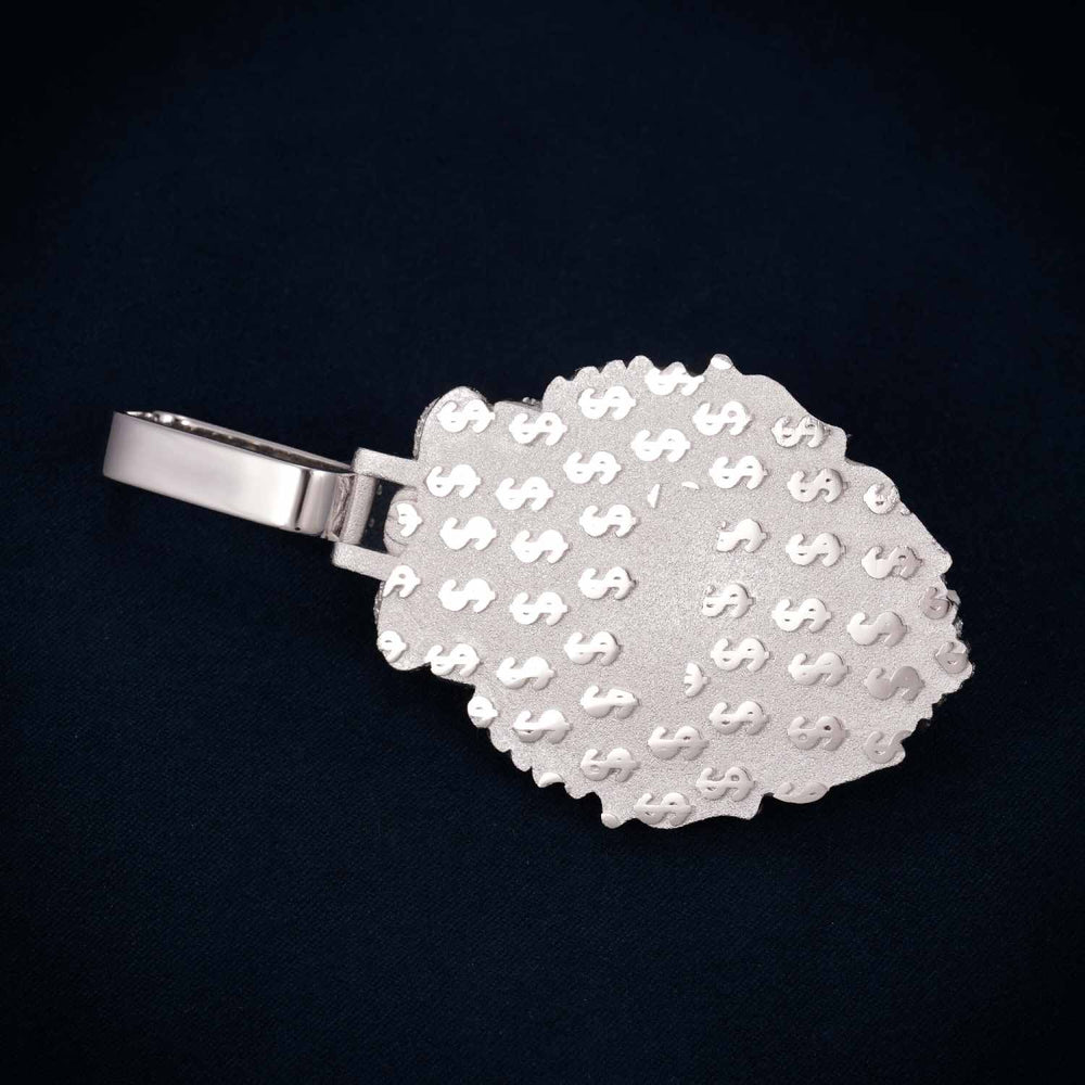 This custom pendant is iced out withย VVS moissanite flawless diamonds. All of the diamonds on this custom pendant passes the diamond tester.