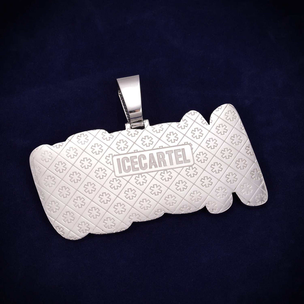 This custom pendant is iced out withย VVS moissanite flawless diamonds. All of the diamonds on this custom pendant passes the diamond tester.