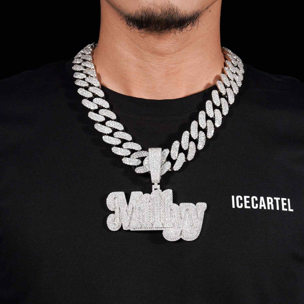 ICECARTEL exclusive "MILLYY" Custom Moissanite Pendant 14k Goldย is now available, made of 925 sterling silver and PVD plated with a thick layer of 14K Gold.
