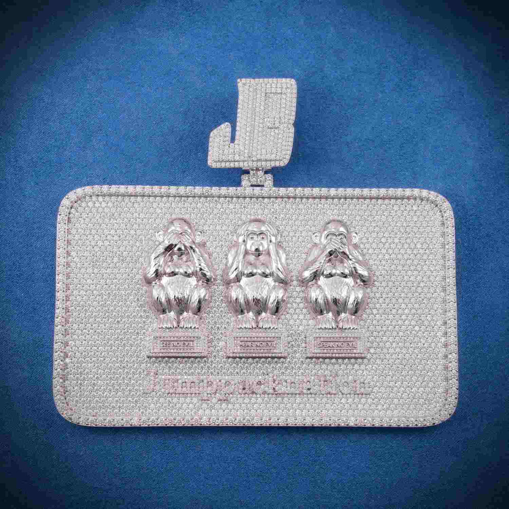ICECARTEL exclusive "Monkey Card" Custom Rectangle Pendant is now available, made with a base of 925 sterling silver and PVD plated with a thick layer of 14K Gold.