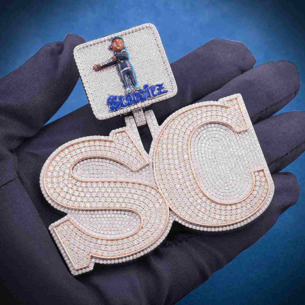 ICECARTEL exclusive "SC" Custom Moissanite Logo Pendant 14k Goldย is now available, made of 925 sterling silver and PVD plated with a thick layer of 14K Gold.