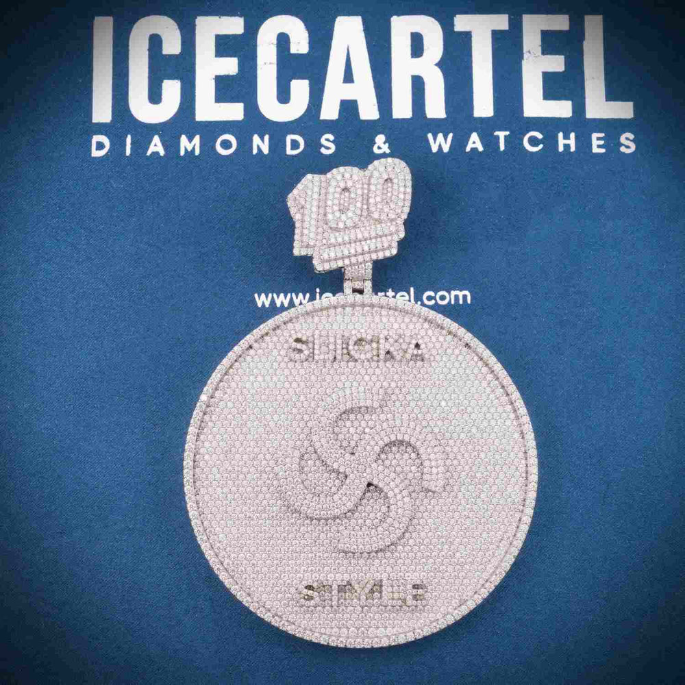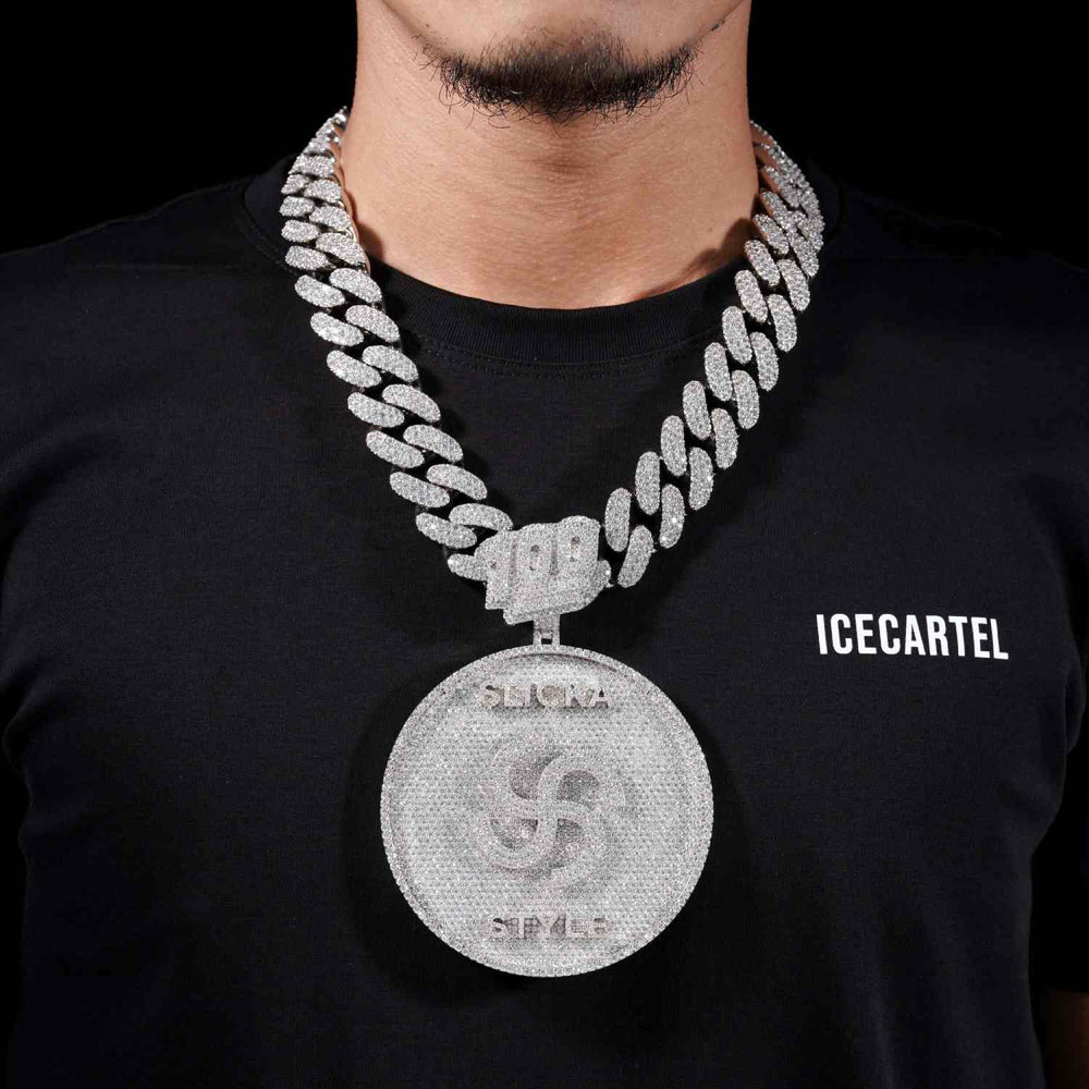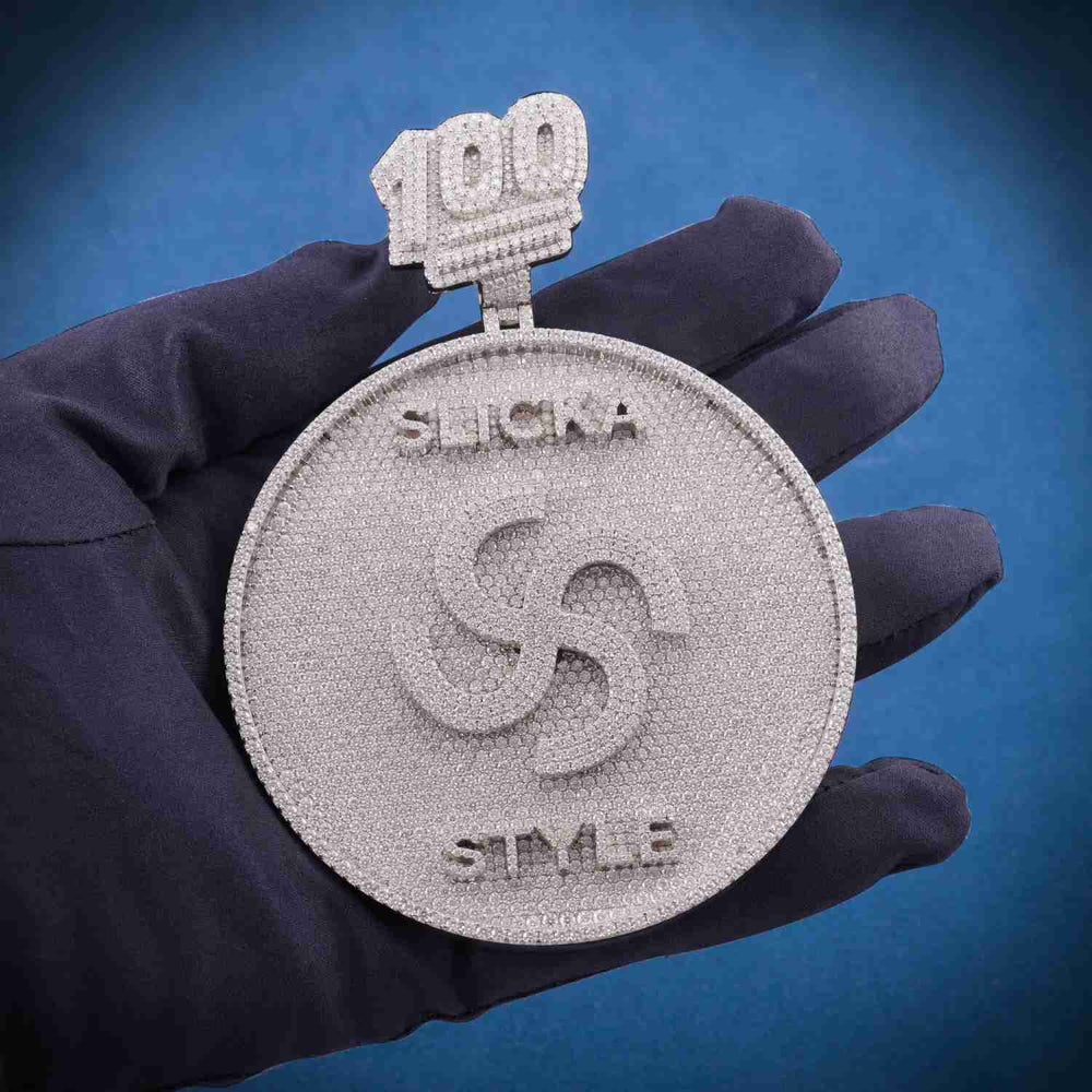 ICECARTEL exclusive "SLICKA STYLE" Custom Moissanite Pendant 14k Goldย is now available, made of 925 sterling silver and PVD plated with a thick layer of 14K Gold.