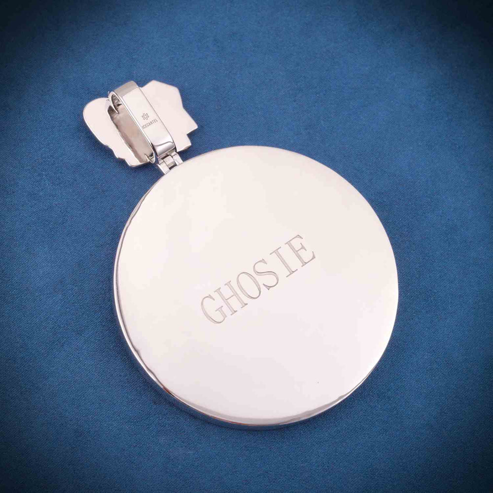 The total weight of this customized pendant starts from 108.5 grams (4 letters), however, the exact weight will vary depending on the Size. The bezel of this custom design moissanite pendant measures approximately
