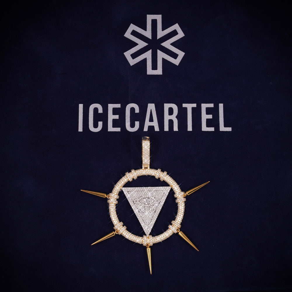 ICECARTEL exclusive "Triangle Eye" Custom Moissanite Pendant 14K Gold is now available, made with a base of 925 sterling silver and PVD plated with a thick layer of 14K Gold.