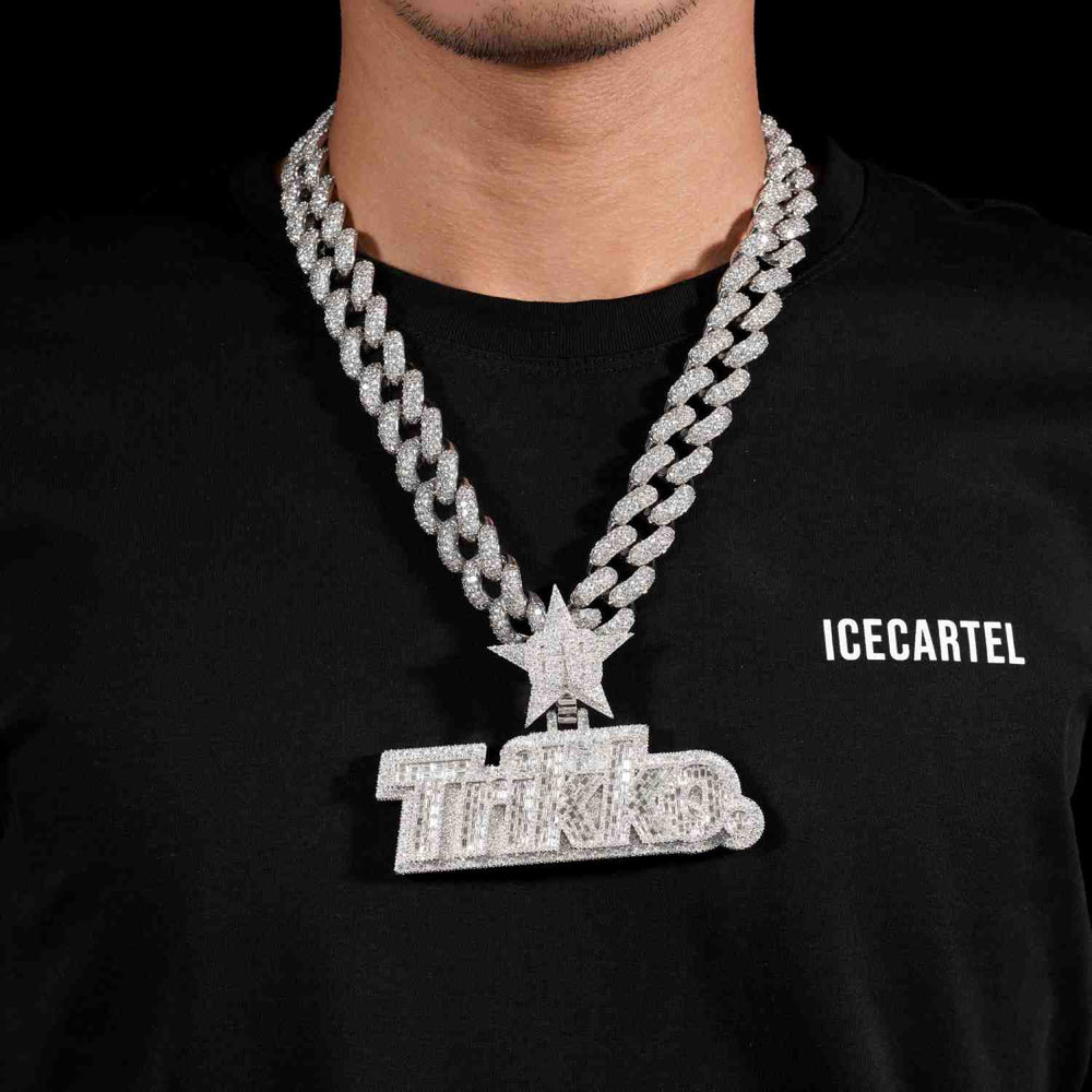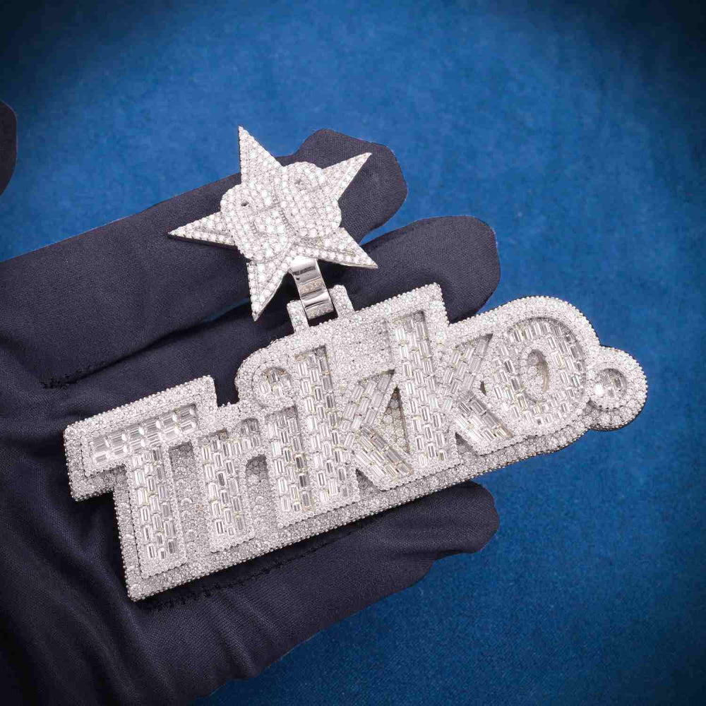 ICECARTEL exclusive "TRIKKO" Custom Moissanite Pendant 14K Goldย is now available, made of 925 sterling silver and PVD plated with a thick layer of 14K Gold.