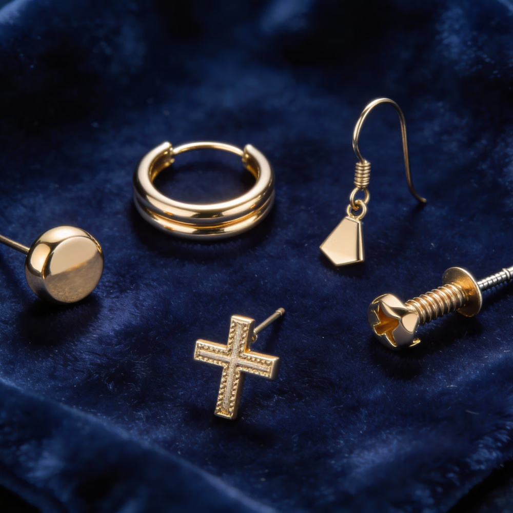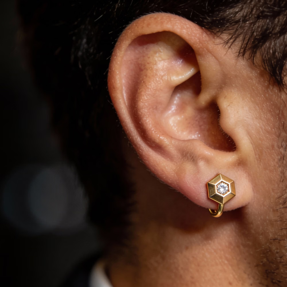 Almost all our men’s 14K gold earrings come in three colors: rose gold, yellow gold, and rose gold. This means we provide you with options for each design that complements any kind of outfit you are planning on. For formal outfits, choose either white gold or rose gold. Yellow gold is best for casual fits and streetwear.