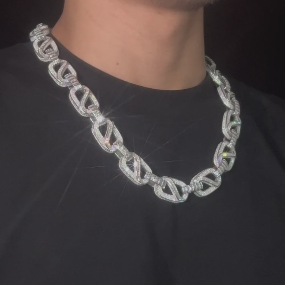 At 20 inches, this mariner link chain weighs exactly 219 grams and has a total diamond carat weight of 36 CTW.