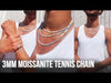 3mm moissanite tennis chain necklace 14k white gold ice back