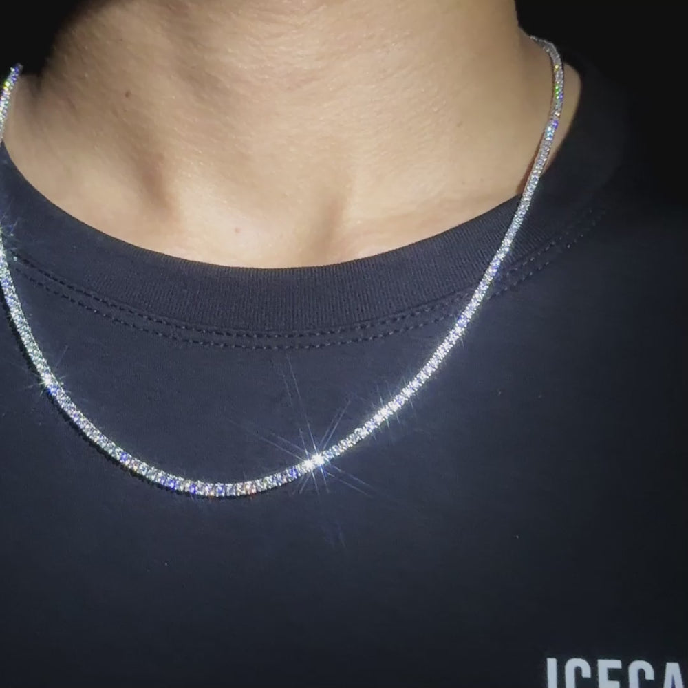 2mm moissanite tennis necklace chain white gold diamond for men hand