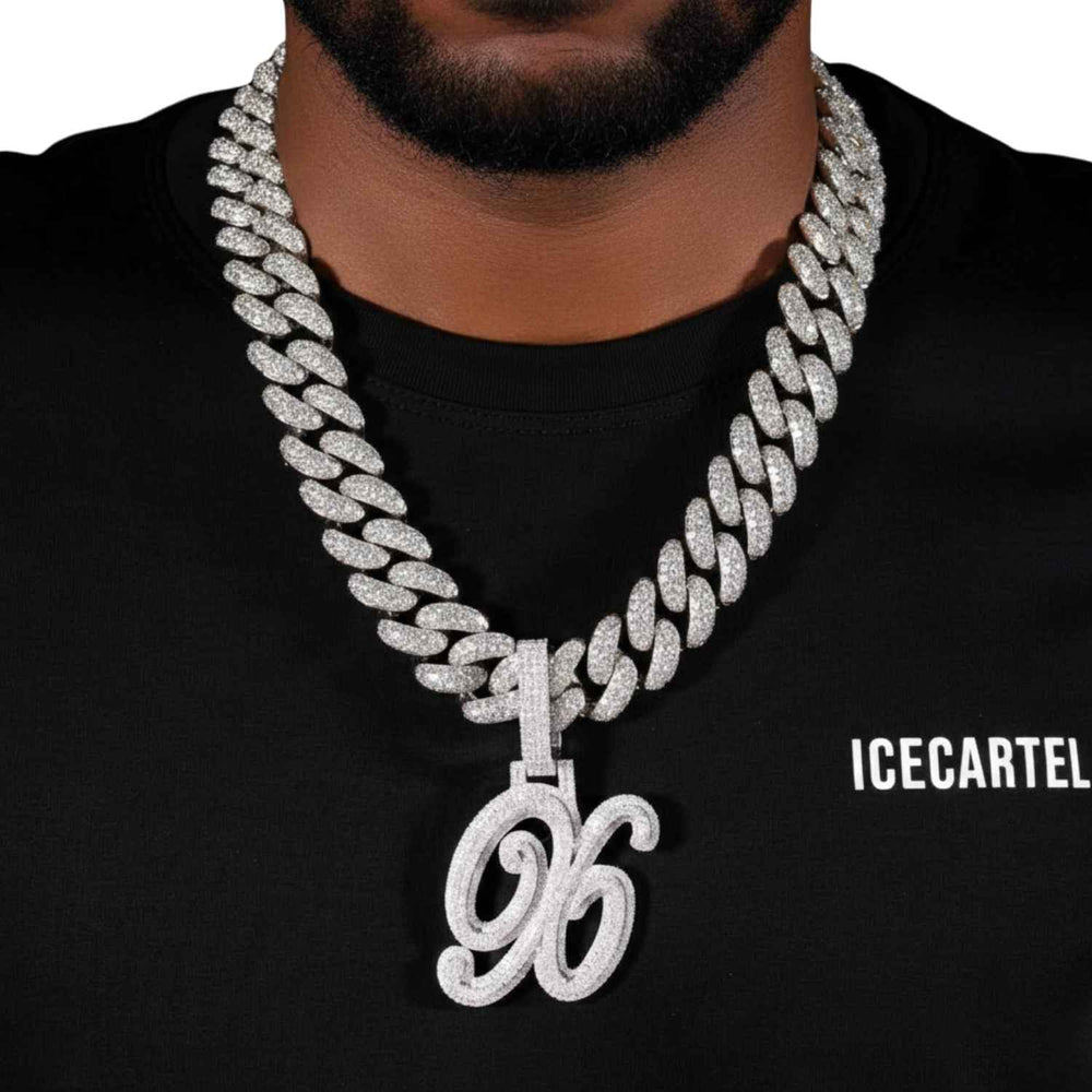 ICECARTEL exclusive "96" Custom Moissanite Pendant 14K Gold is now available, made with a base of 925 sterling silver and PVD plated with a thick layer of 14K Gold.