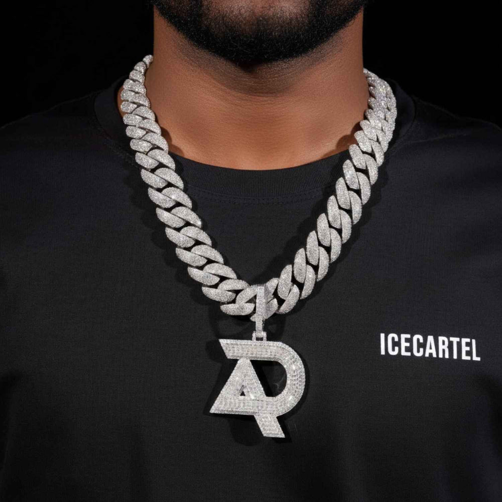 ICECARTEL exclusive "AD" Custom Moissanite Pendant 14K Gold is now available, made with a base of 925 sterling silver and PVD plated with a thick layer of 14K Gold.