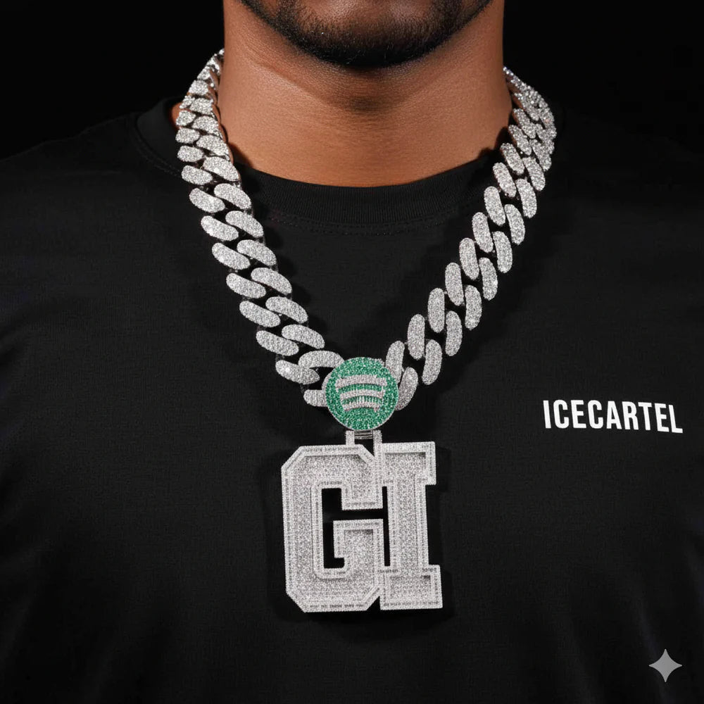 ICECARTEL exclusive "GI" Custom Moissanite Pendant 14K Goldย is now available, made of 925 sterling silver and PVD plated with a thick layer of 14K Gold.