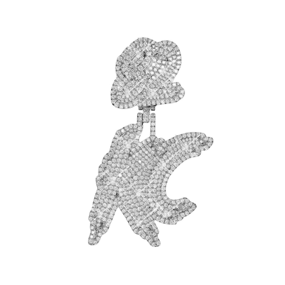 This custom pendant is iced out with VVS moissanite flawless diamonds. All of the diamonds on this custom pendant passes the diamond tester.