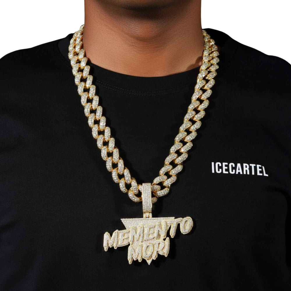 ICECARTEL exclusive "Memento Mori" Custom Moissanite Pendant 14K Gold is now available, made with a base of 925 sterling silver and PVD plated with a thick layer of 14K Gold.