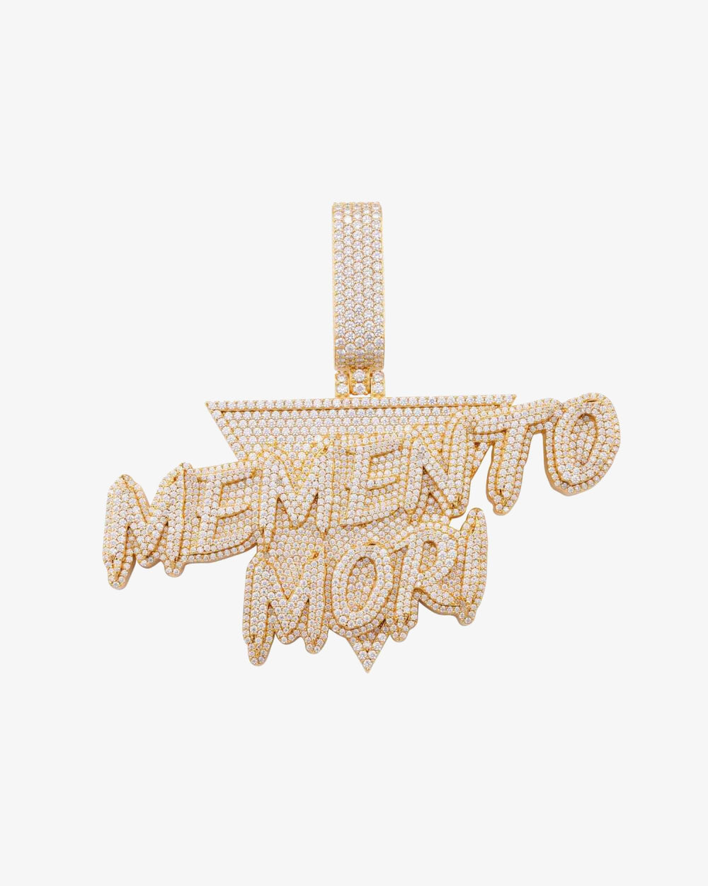 IceCartelโข exclusive "Memento Mori" Custom Moissanite Pendant 14K Gold is now available, made with a base of 925 sterling silver and PVD plated with a thick layer of 14K Gold.
