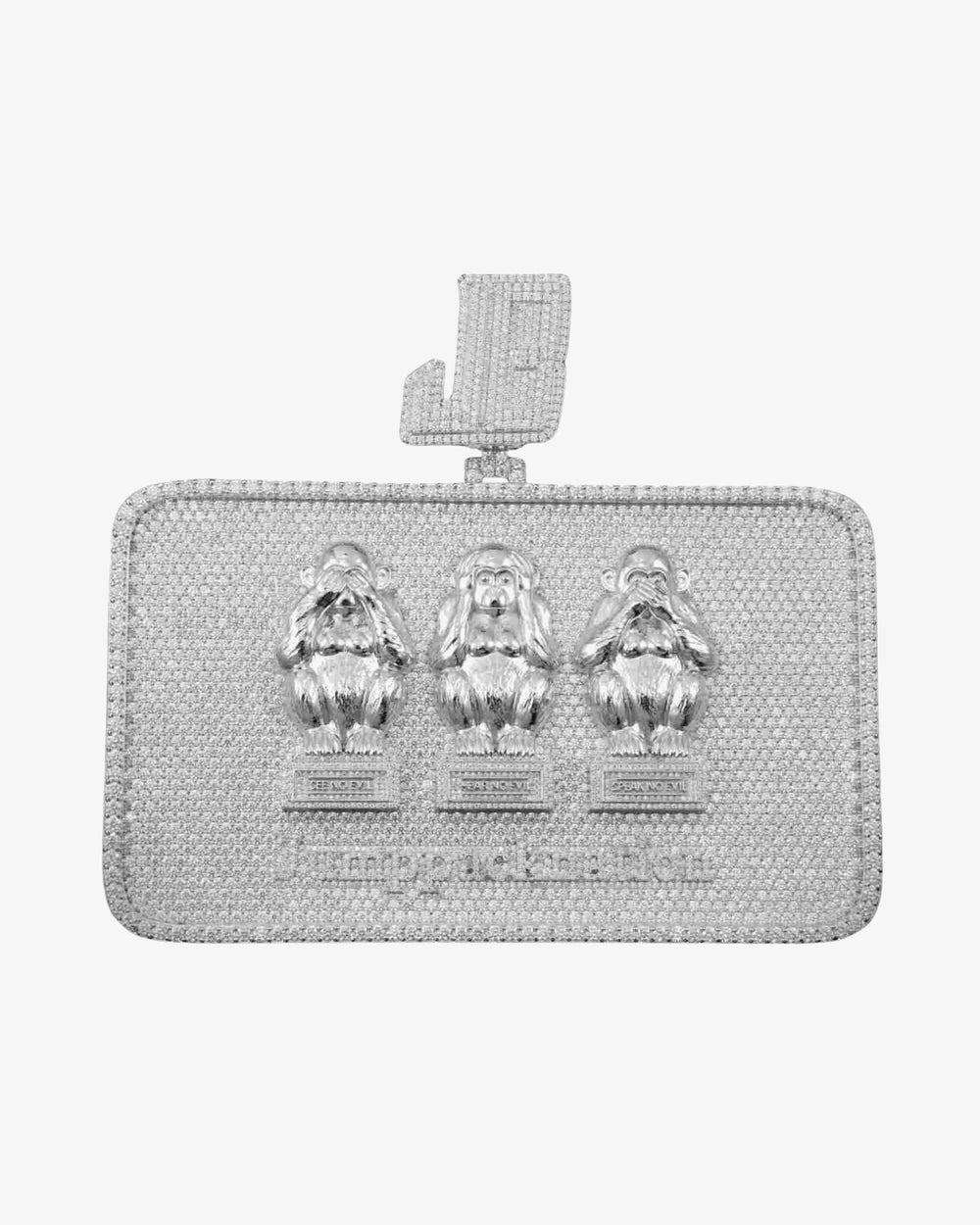 "Monkey Card" Custom Moissanite Rectangle Pendant 14K White Gold