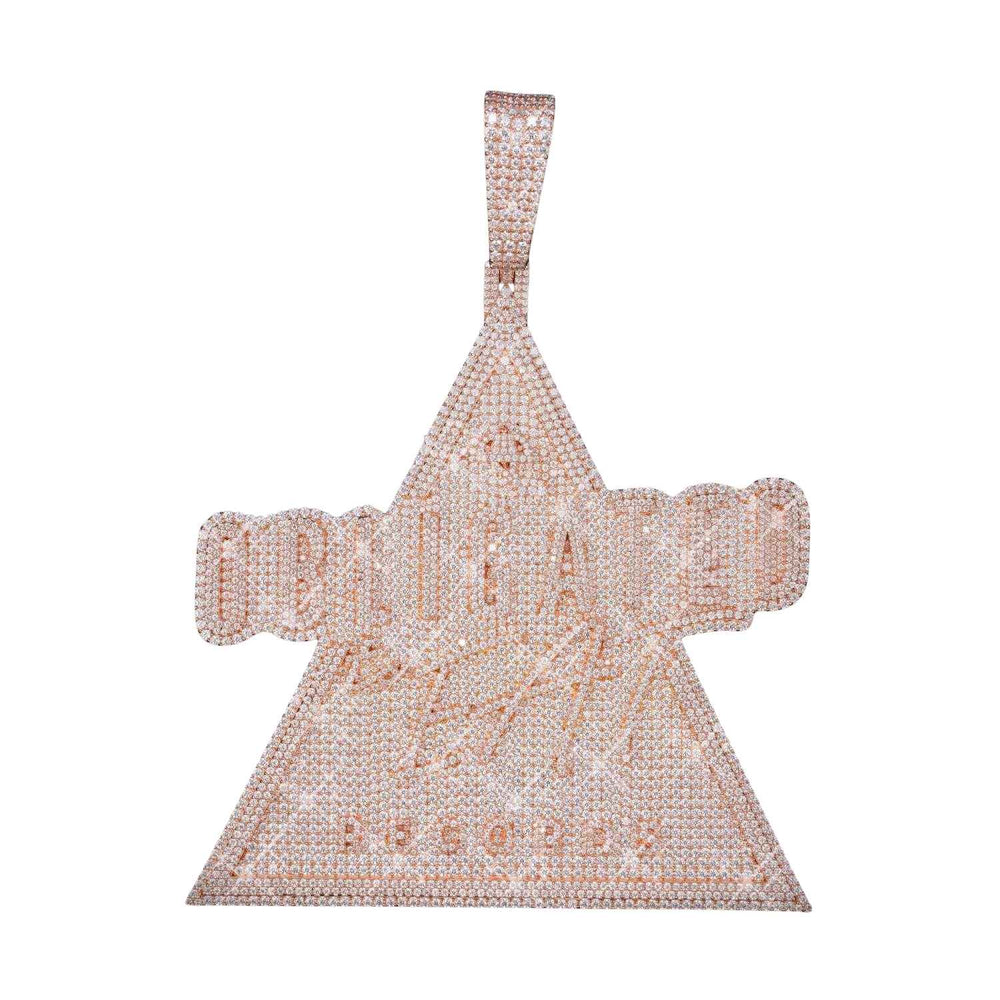 This custom pendant is iced out with VVS moissanite flawless diamonds. All of the diamonds on this custom pendant passes the diamond tester.